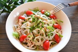 ご紹介するレシピは、豚しゃぶれんこんサラダ。
